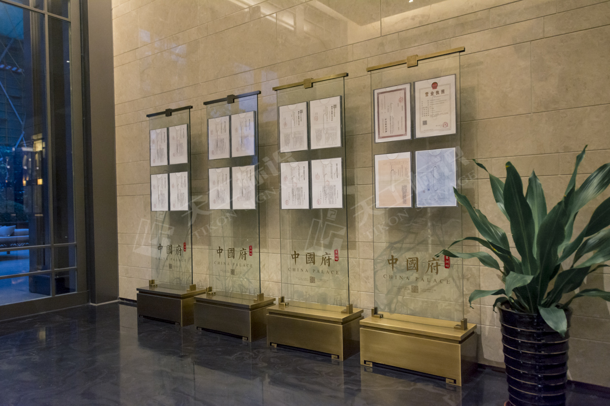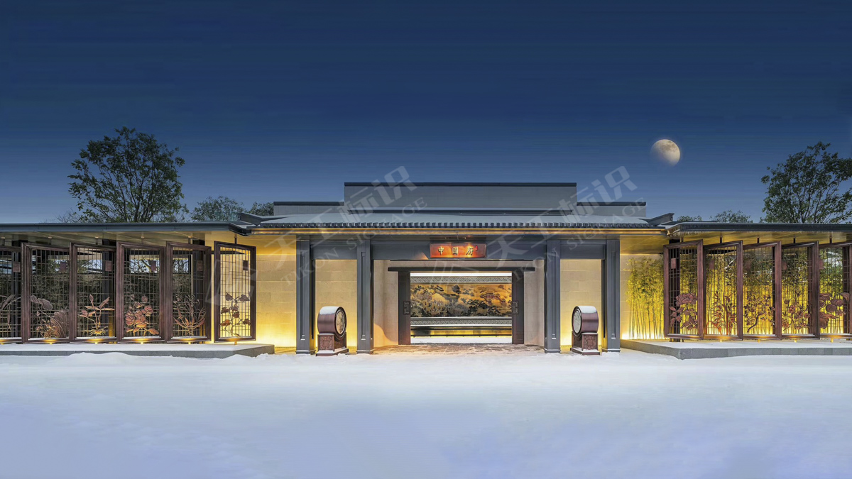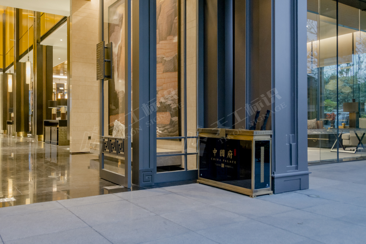 設(shè)計(jì)思路:項(xiàng)目標(biāo)識(shí)系統(tǒng)設(shè)計(jì)思路延續(xù)黑與金的色彩搭配,充分體現(xiàn)項(xiàng)目皇家府邸獨(dú)有的尊貴氣質(zhì);標(biāo)識(shí)中采用充滿中式韻味的符號(hào)進(jìn)行裝飾,將標(biāo)識(shí)與文化集合的恰到好處;標(biāo)識(shí)材質(zhì)整體采用黃銅加玻璃的搭配,黃銅特有的金色屬性與厚重的視覺(jué)感官提升項(xiàng)目的檔次和品質(zhì);玻璃材質(zhì)的通透感搭配黃銅濃郁的尊貴厚重感讓標(biāo)識(shí)的視覺(jué)感受不再單調(diào)乏味,使其更具中式園林所傳遞的內(nèi)在美的體現(xiàn)。