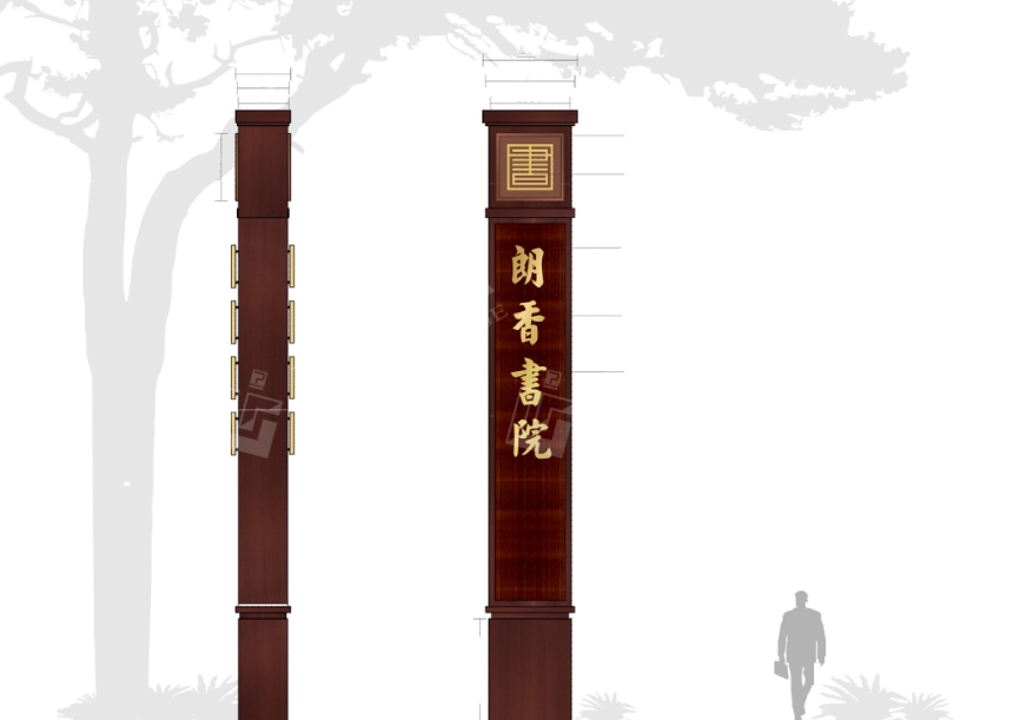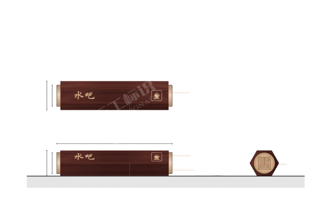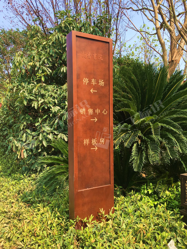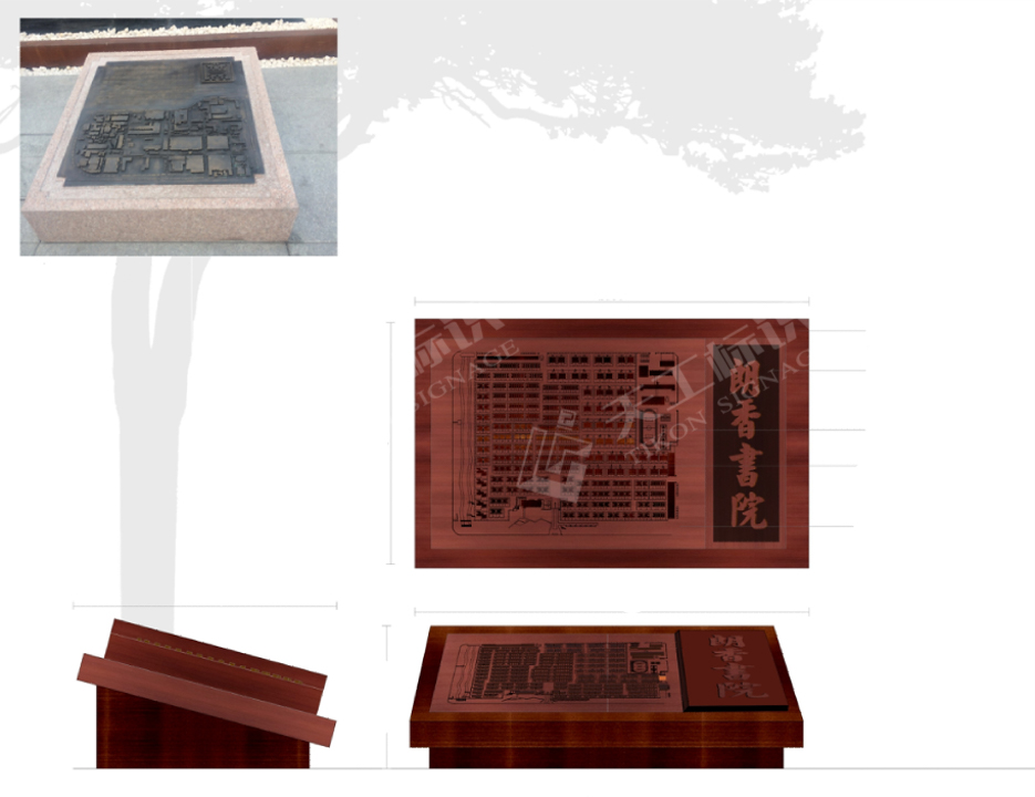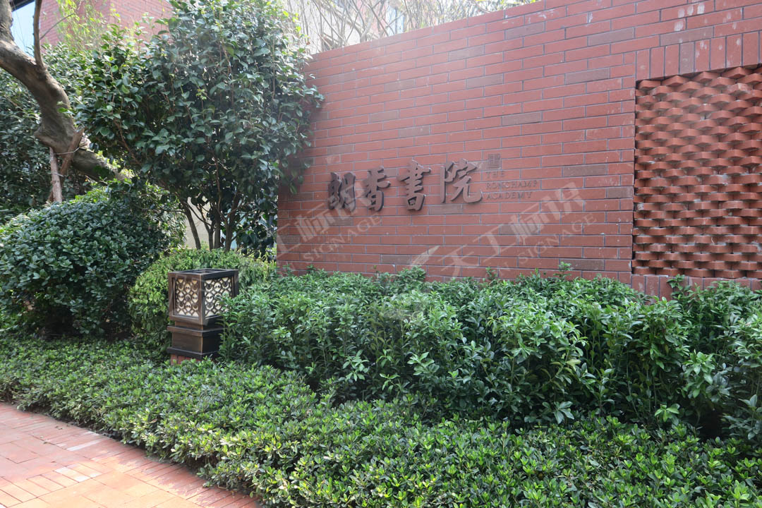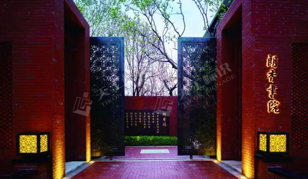整個項目水墨文化和書香氣息濃重,標(biāo)識系統(tǒng)的設(shè)計元素通過運用卷軸、印章和經(jīng)典書法字體,工藝上采用仿古銅拉絲做舊效果處理,古香古色,清淡墨香,整體的效果與項目的文化氛圍相協(xié)調(diào)、相互融合。