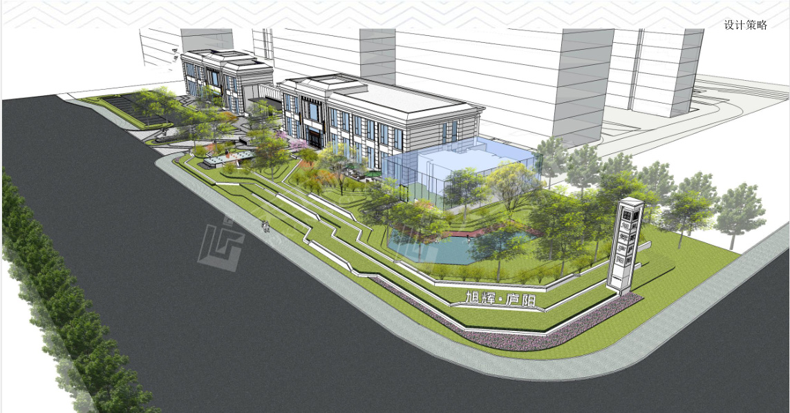 園區(qū)整體形態(tài)如同河流曲折蜿蜒,并取自合肥的水系淵源為設計題材,為本案賦予吉祥寓意 ; 對住區(qū)入口大門進行實景打造,現(xiàn)代簡潔的形體結合新古典品質的細節(jié)處理營造大氣典雅的觀賞體驗和實景參考依據(jù)。