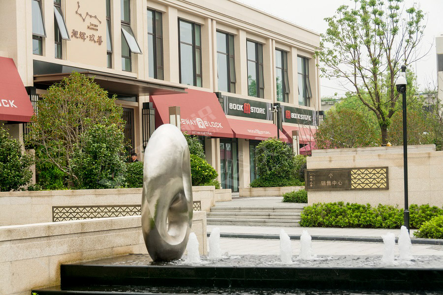 售樓處前場水景配合河道般蜿蜒的曲路,如同城市水系的源頭為本案富裕吉祥寓意的同時使景觀理念的打造更接底氣。