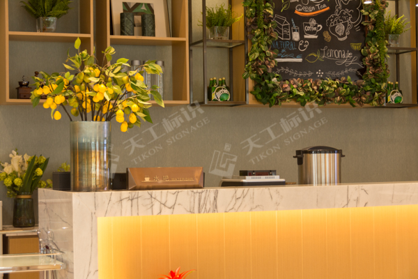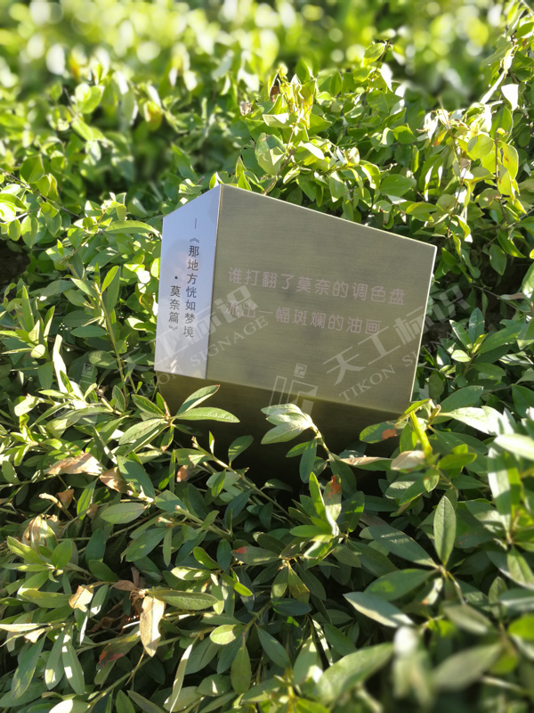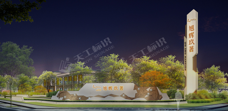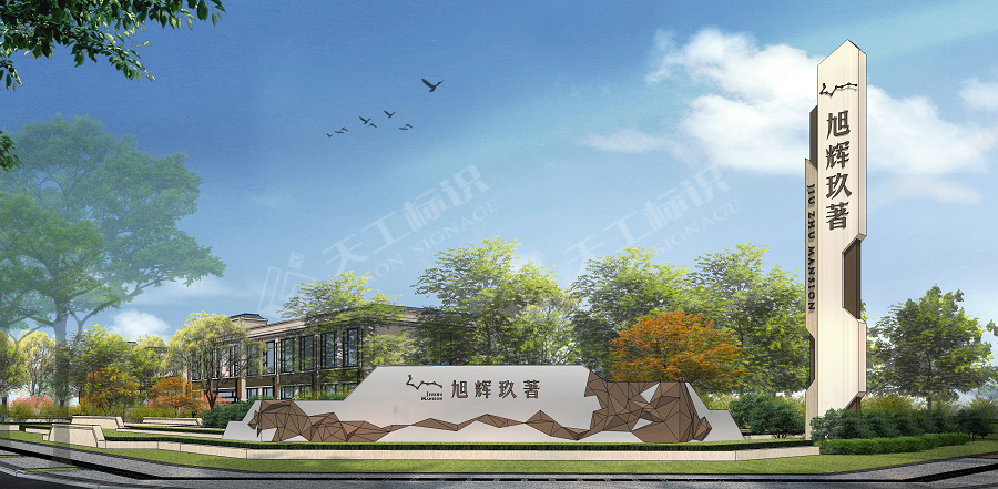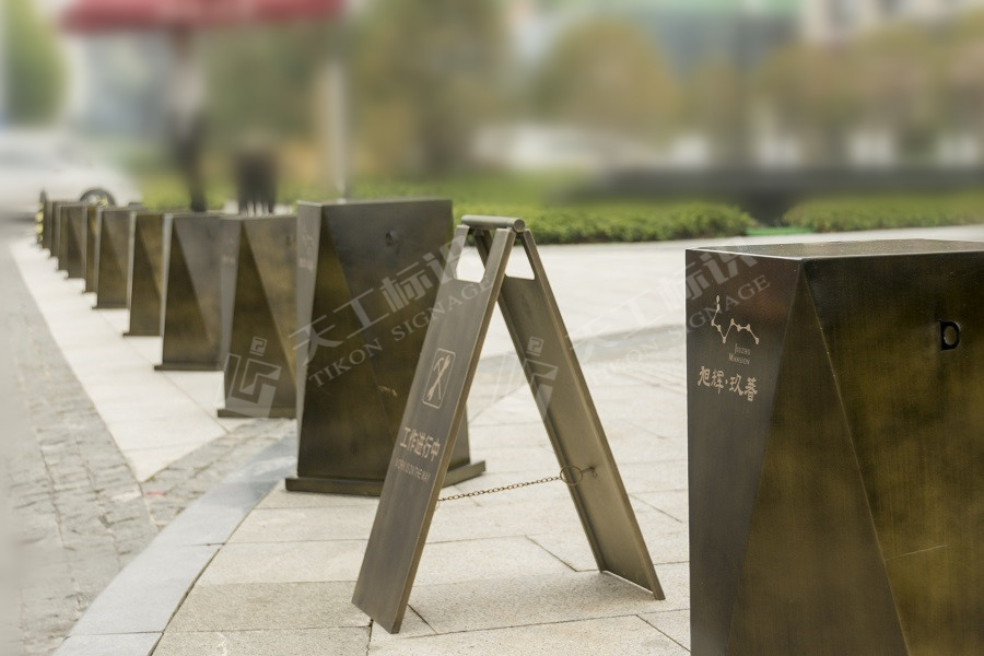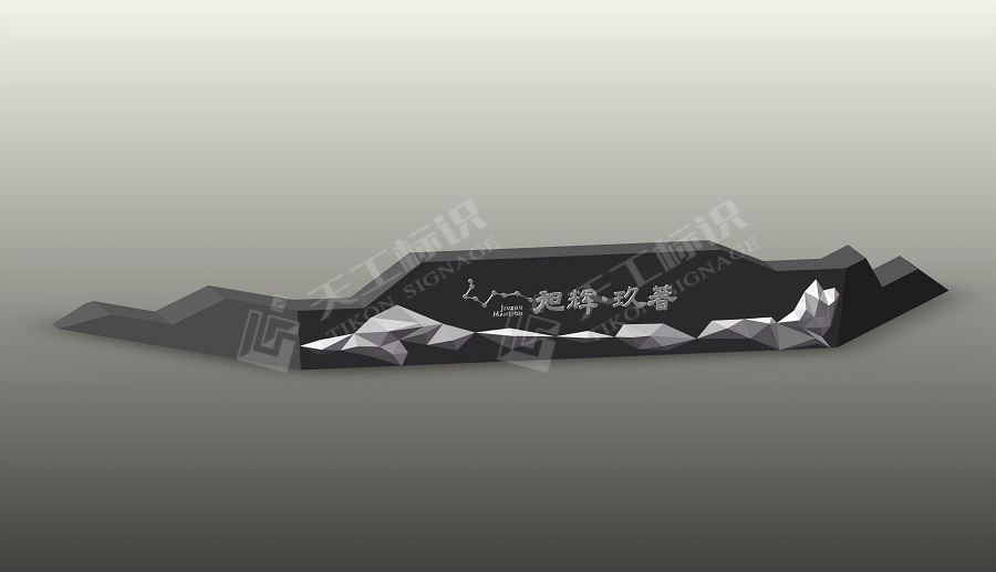 結合建筑、景觀的總體風格,標識設計主要提煉廬州礬石的線條感與現(xiàn)代感及現(xiàn)代線性+折角的科技美學元素,將標識元素融入園境之中,營造現(xiàn)代城市的園境氛圍。