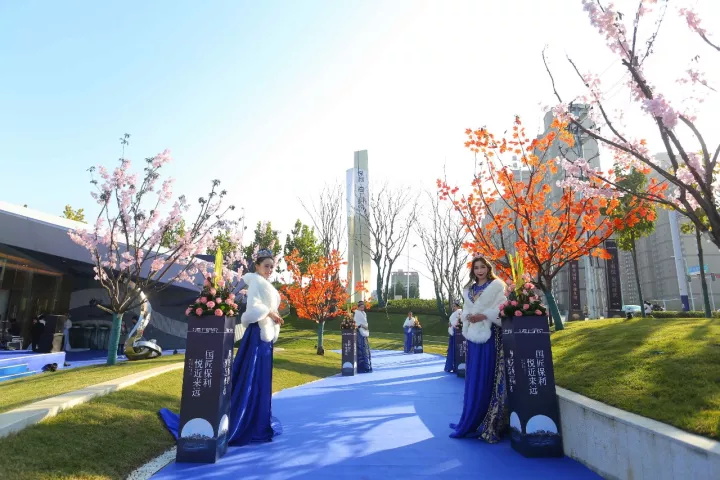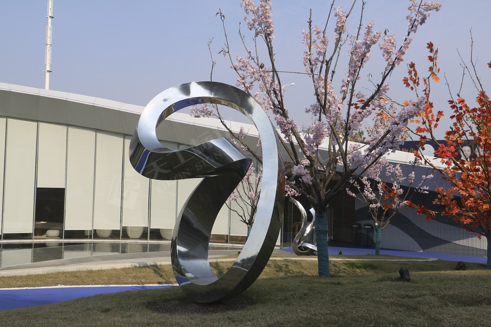 在雕塑前留下合影,云錦牽以其美好的寓意與時光相約,