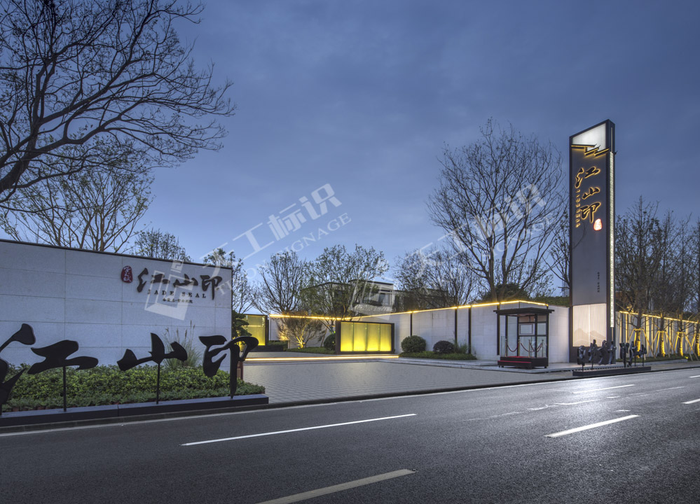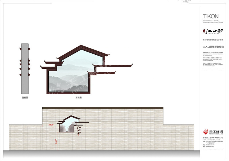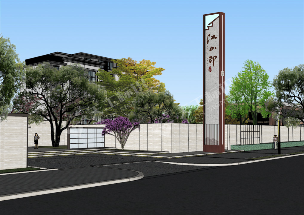 標(biāo)識設(shè)計結(jié)合建筑和景觀的整體風(fēng)格,提取徽派屋檐的元素與中式紋樣元素,顯示出與整體設(shè)計理念一致的視覺形象。