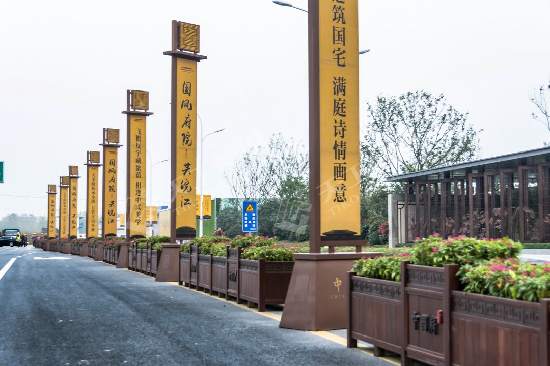 葛洲壩中國府的示范區(qū)采用圍合式布局。從車馬院到主大門,一路經(jīng)過24節(jié)氣窗,扇窗圖樣取自中國傳統(tǒng)風(fēng)俗文化-24節(jié)氣,與之相對應(yīng)的有24番花。中國古代建筑中常用24根柱石代表24節(jié)氣,象征皇權(quán)和尊貴。