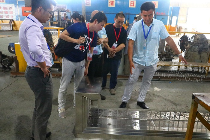 2017年5月17日上午,武漢姚經(jīng)理一行三人蒞臨我司考察標(biāo)識(shí)標(biāo)牌項(xiàng)目。在天工劉經(jīng)理的陪同下,一行人參觀了我司的生產(chǎn)車(chē)間,車(chē)間陳主任也隨同解說(shuō)了信報(bào)箱及標(biāo)識(shí)標(biāo)牌的制作流程。